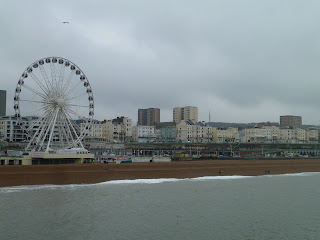 Just before the lunch break we walked along tiny streets weaving through the center of town that were lined with little shops selling jewelry and gold. One of the other teachers had done a teaching assistantship in Brighton so she knew the city really well. The students were given an hour of free time to eat lunch inside a shopping mall. Since I had left my packed lunch on the bus I needed to buy lunch somewhere in town. The teachers all decided to indulge in Burger King for lunch. Don't worry it's just as bad for you in England as it is in the states. Apparently there are no Burger Kings in France so of course the other teachers were super excited to go there for lunch. I just didn't want to eat alone so I tagged along. After lunch the entire group walked out to the Brighton Pier for some free time in the arcades and to ride the carnival rides. I just walked around with a group of my students practicing our english and french. It was still pretty cold and windy, but beautiful sights on the ocean and the coast.